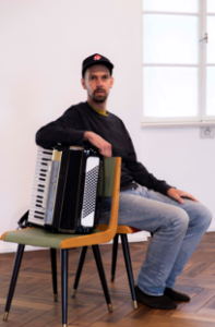 Maxi Pongratz pendelt zwischen München sowie Oberammergau und ist Akkordeonspieler, Texter und Liedschreiber.